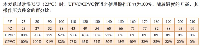 PS:有帶螺牙的管線,PVC-U部分不得超過110℉(43℃);PVC-C部分不得超過150℉(66℃)。