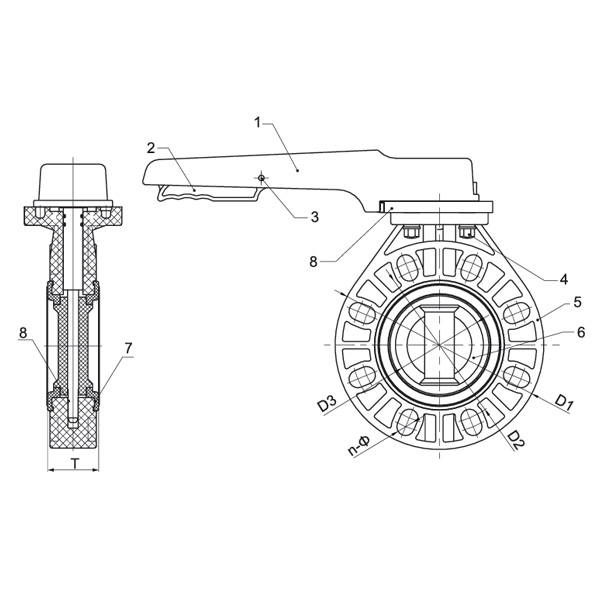 PVC-C D71X-10V 手柄蝶閥DN40-200 1-1/2"-8"美標